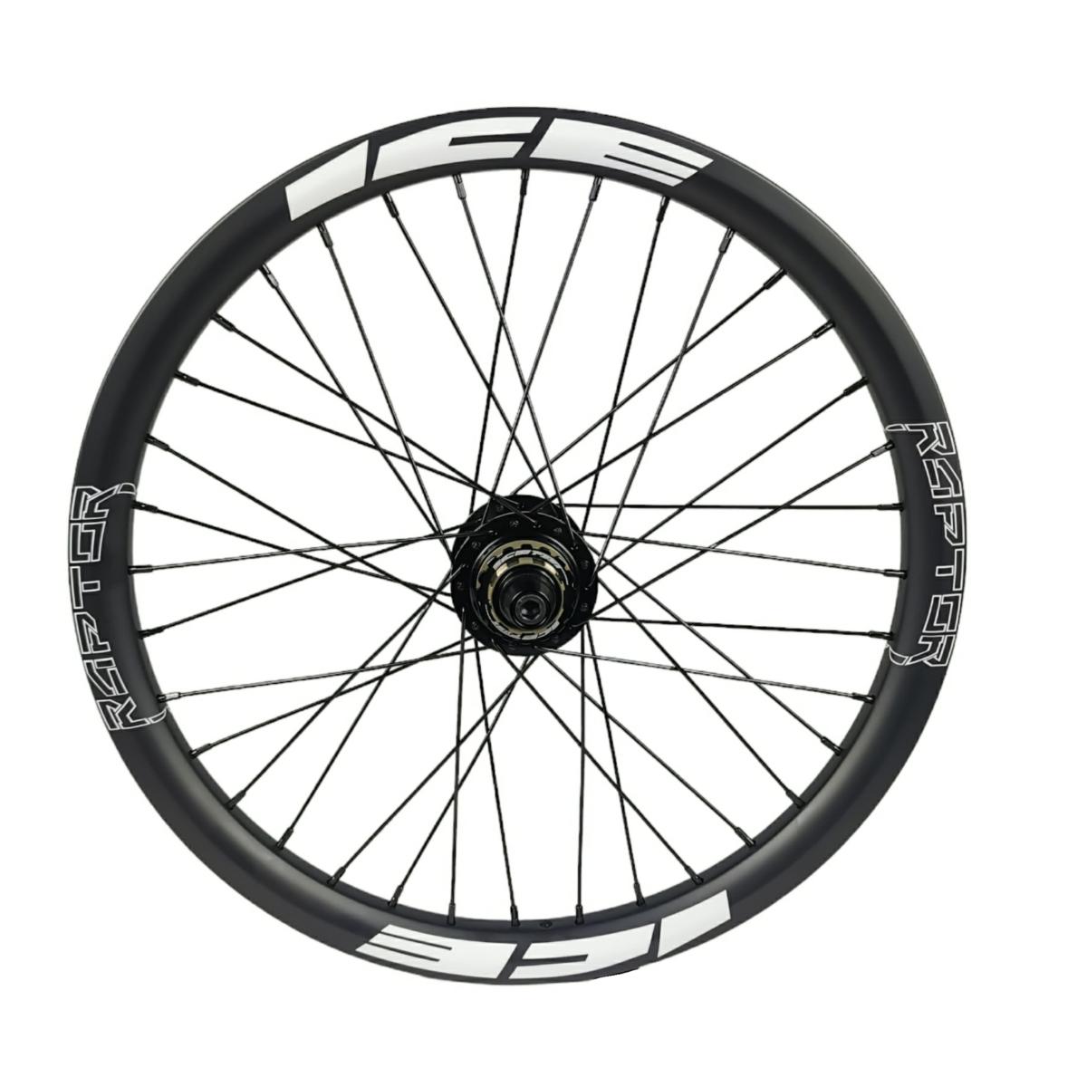 Roue arrière ICE RAPTOR 20'' Carbone Noire logo Blanc - Moyeu HACKER X 10-15